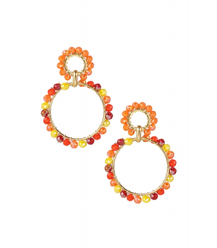 Ontdek onze prachtige collectie goudkleurige oorhangers met schitterende oranje gekleurde glas kraaltjes!