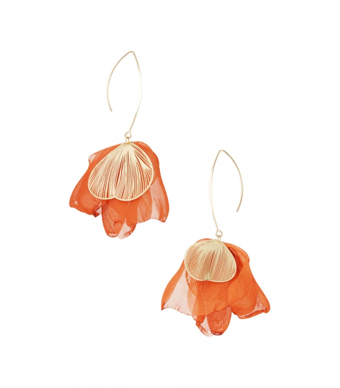Geef je look een speelse twist met deze goudkleurige oorhangers met oranje stof. De warme goudkleurige afwerking straalt elegantie uit, terwijl het levendige oranje zorgt voor een opvallend accent.