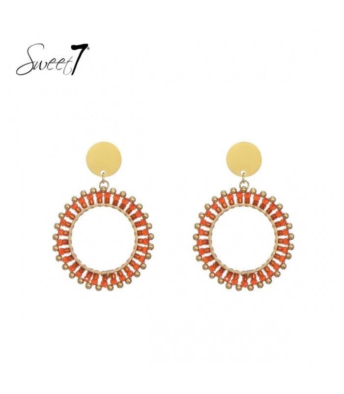 Oranje glaskralen oorhangers met een goudkleurige rand en oorstukje