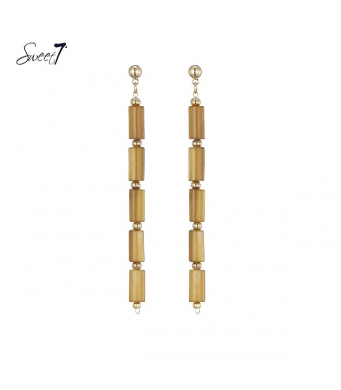 Oranje lange oorbellen met goudkleurige accenten van Sweet7.