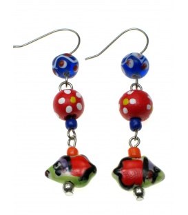 Gekleurde oorhangers met bedels en kwasten. De lengte van deze oorbel is 8 cm. Voor oren met gaatjes. De oorbellen zijn nikkelvrij. De oorbellen zijn voorzien van stoppertjes.
