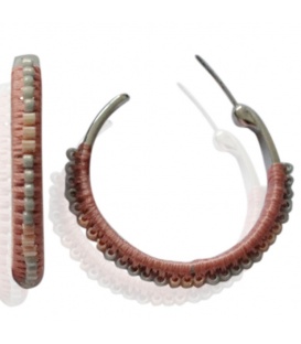 Zilverkleurige oorringen met gekleurde leren hangers. De lengte van deze oorbel is circa 7,5 cm. Voor oren met gaatjes. De oorbellen zijn nikkelvrij. Voorzien van stoppertjes.