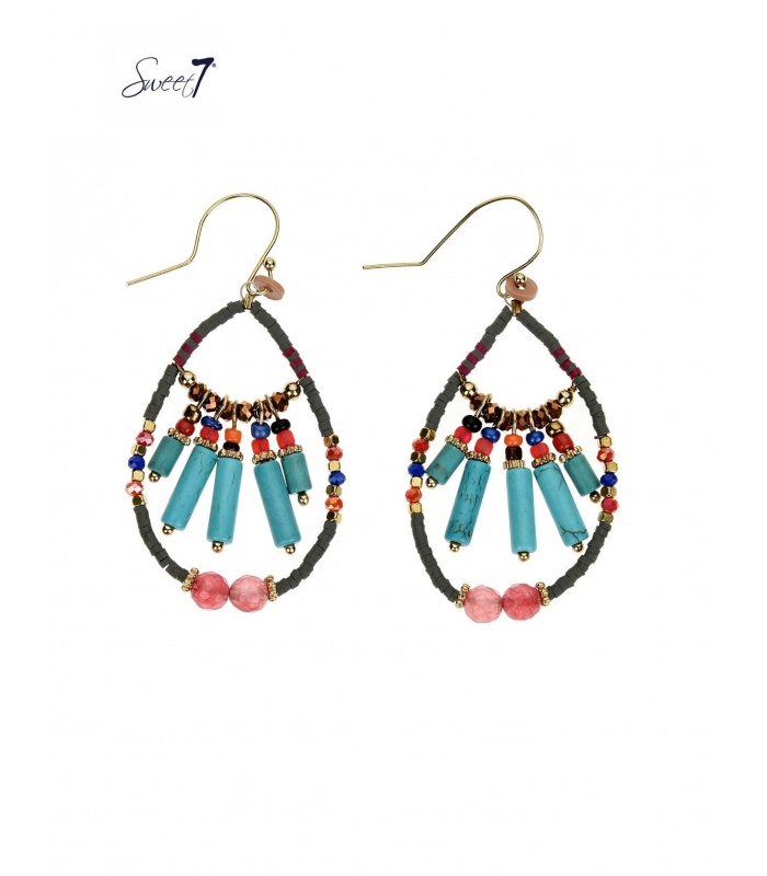 Gekleurde kralen oorbellen met een ovale hanger.