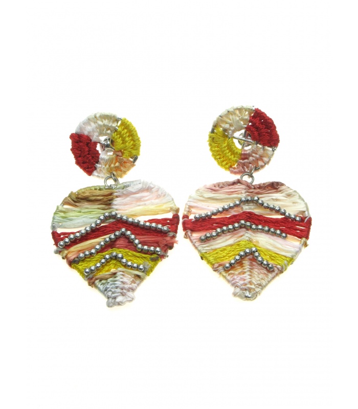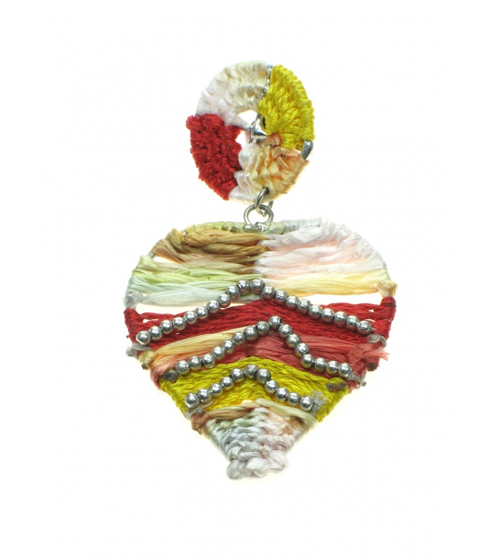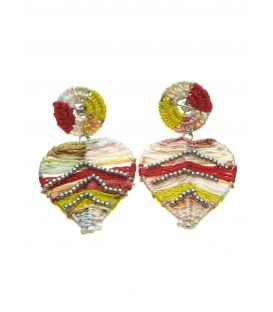 Gekleurde oorbellen met hartvormige hanger en raffia