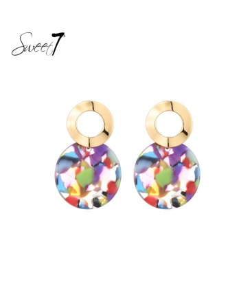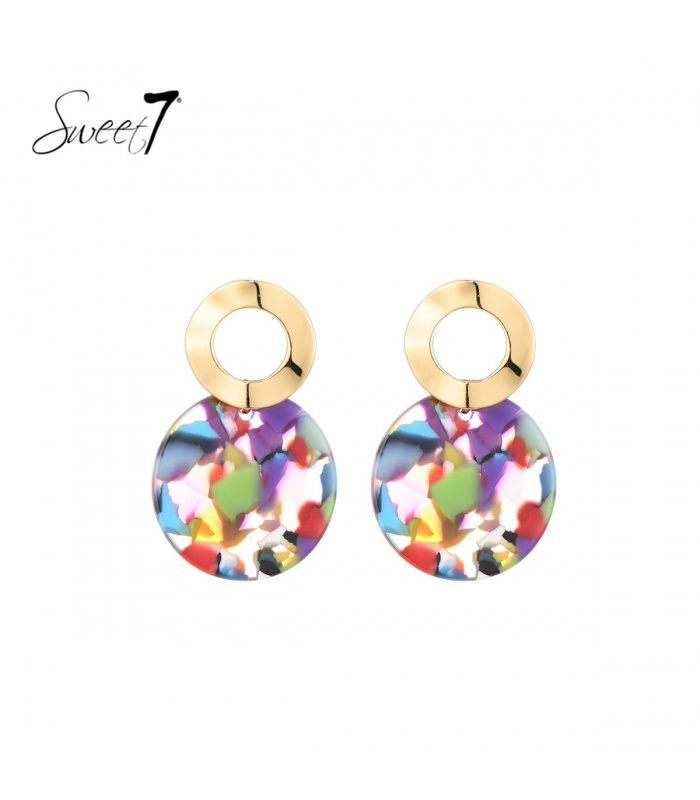 Deze oorbellen combineren levendige kleuren met elegante goudkleurige accenten. Het ontwerp voegt een speelse en stijlvolle touch toe aan elke outfit. Perfect voor zowel casual als formele gelegenheden. De oorbellen zijn nikkelvrij en voorzien van stoppertjes voor comfortabel dragen.