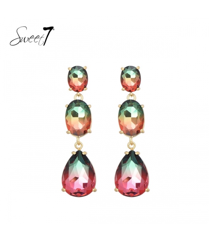 Schitterende collectie gekleurde oorhangers, verrijkt met fonkelende glas steentjes die elke outfit doen stralen. Deze oorbellen zijn het perfecte accessoire voor elke gelegenheid, van dagelijkse elegantie tot avondglamour. Ze brengen een vleugje luxe en verfijning, zonder de bank te breken.