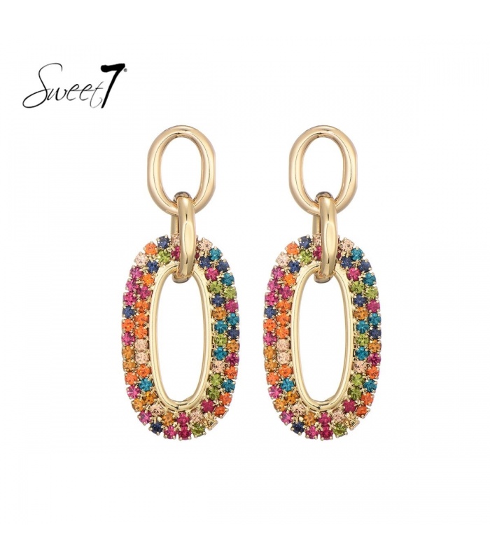 Goudkleurige Oorhangers met Gekleurde Kristal Steentjes: Een Schitterende Toevoeging aan Jouw Sieradencollectie!