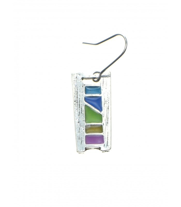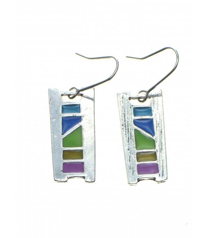 Langwerpige mooie oorhangers met vrolijk gekleurde invulling.