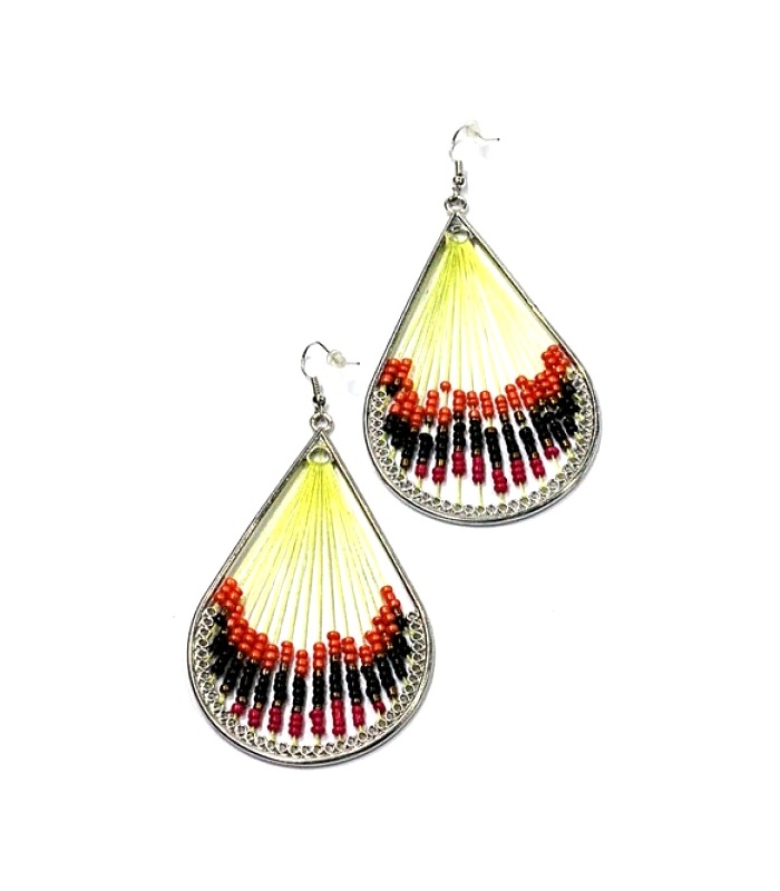Metalen oorbellen met vlechtdraad en kraaltjes.