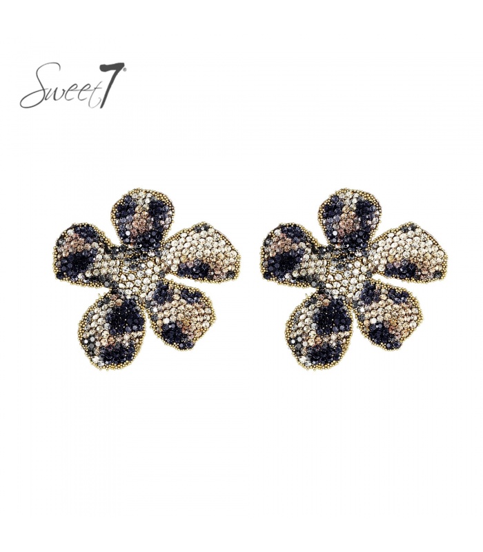 Hoe breng je glamour en speelsheid samen in een sieraad? Deze bloemvormige oorbellen schitteren met honderden kristallen in tinten als goud, zwart en wit. Het subtiele luipaardpatroon geeft elke bloemblad diepte en karakter, zonder te overheersen.