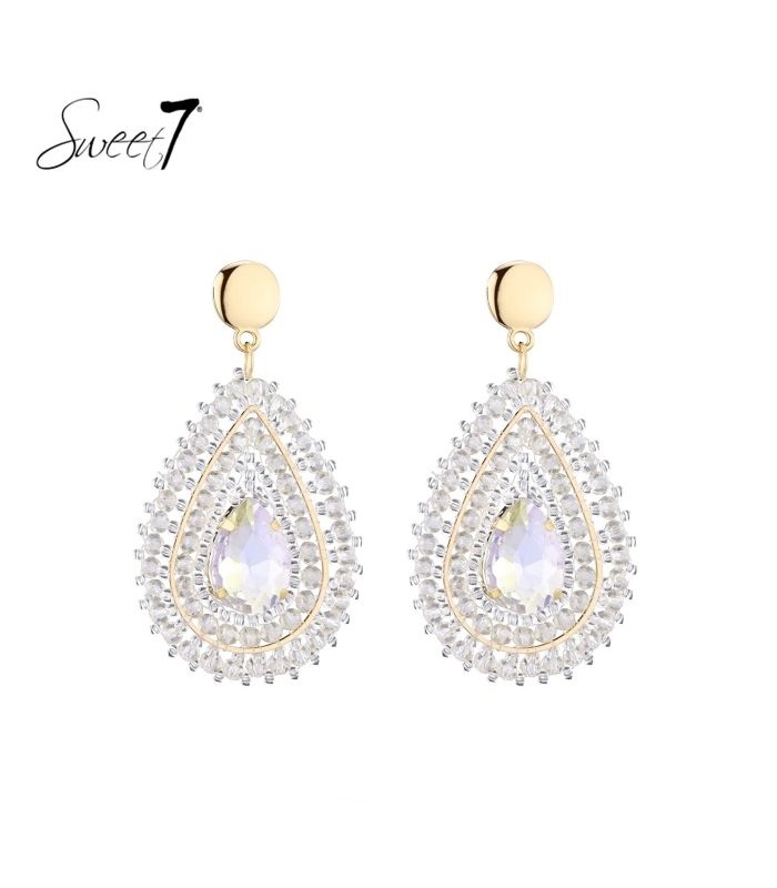 Wat geeft jouw look direct een vleugje glamour? Deze druppelvormige oorbellen van Sweet7 stralen bij elke beweging. De helder facetgeslepen steen in het midden vangt het licht op magische wijze, omlijst door meerdere rijen fijne kraaltjes in een kristalheldere tint. De zachte glans van het goudkleurige accent maakt het geheel compleet.