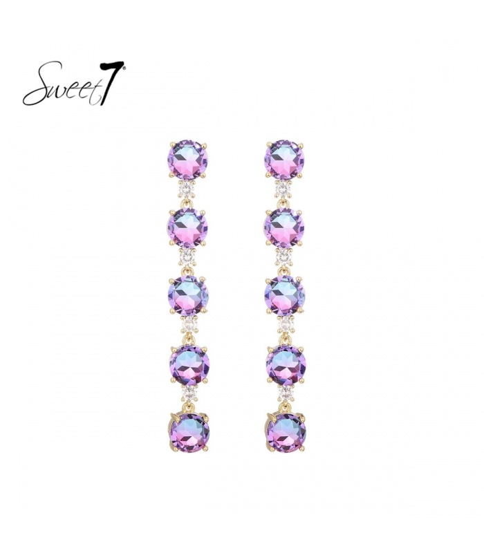 Prachtige oorhangers versierd met fonkelende paarse glas steentjes. Deze oorhangers zijn de perfecte mix van elegantie en trend, ontworpen om elke outfit een vleugje glamour te geven. Waarom kiezen voor paars? Paars staat bekend om zijn koninklijke allure en veelzijdigheid, waardoor het naadloos aansluit bij diverse modetrends en seizoenen.