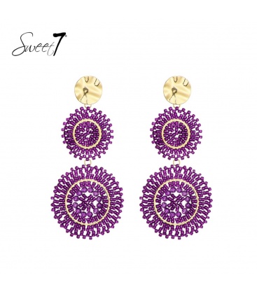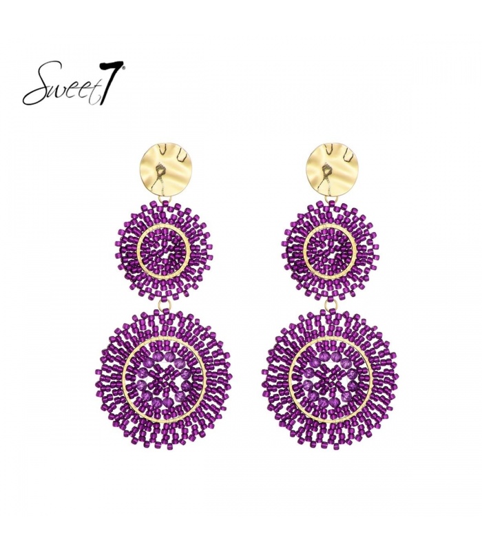 Mooie paarse oorhangers met 2 cirkels van glas kralen en een goudkleurig oor stukje