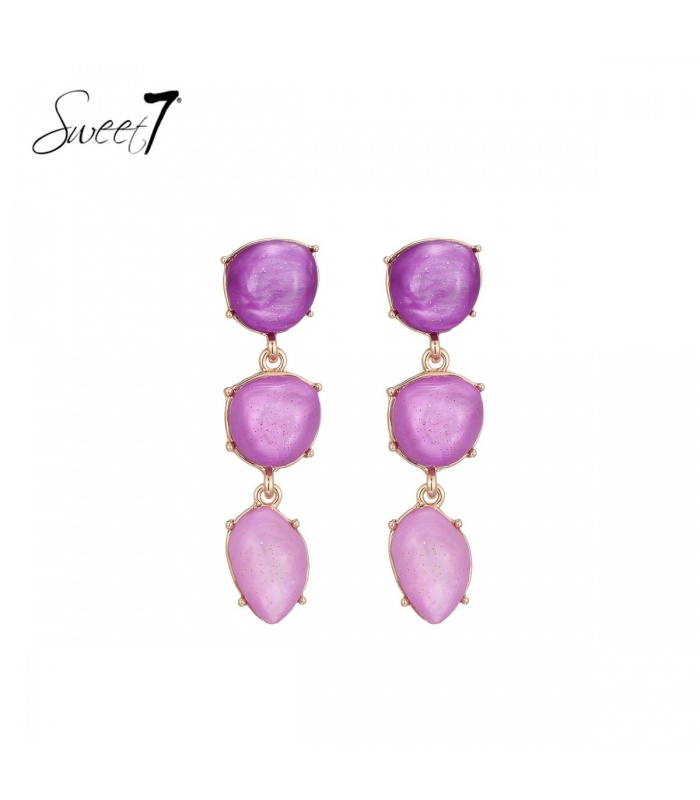 Hoe maak je je look direct sprankelend? Deze oorbellen in druppelvorm met drie schakels in oplopende paarstinten geven kleur en elegantie. De glanzende afwerking vangt het licht bij elke beweging. Perfect voor een avondje uit of een frisse fashion statement overdag.