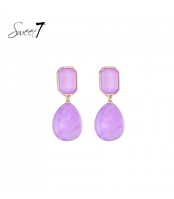 De combinatie van een strakke, rechthoekige bovenkant met een afgeronde druppelvorm geeft een stijlvolle, moderne twist. De lavendelkleurige steen vangt het licht subtiel en voegt een verfijnde touch toe aan elke look. Een perfect accessoire voor wie houdt van kleur met klasse.