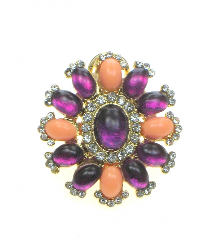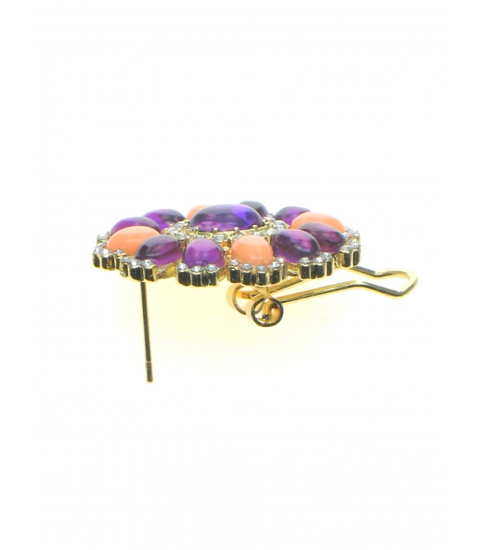 Ronde paars met roze oorbellen in goudkleurige zetting