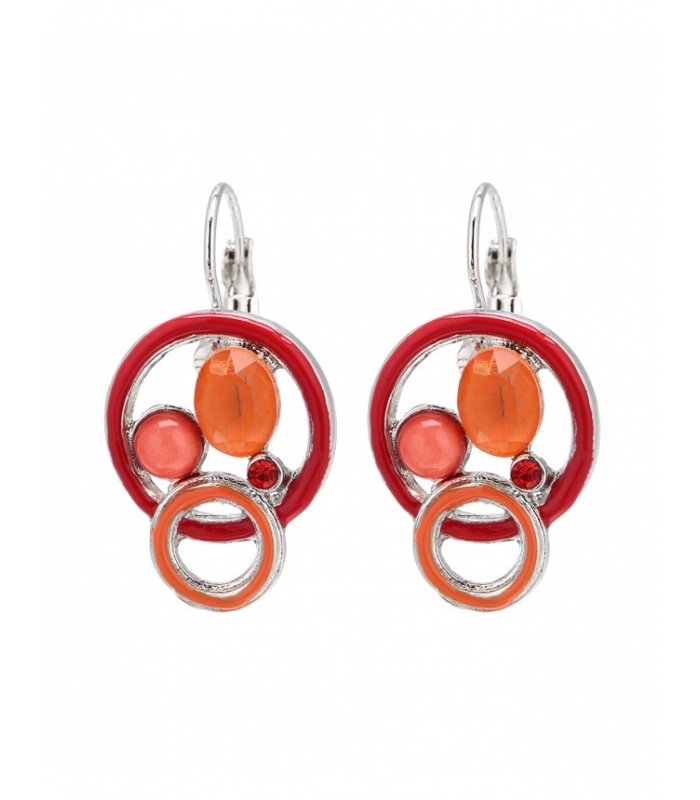 Voeg een opvallend en vurig accent toe aan je look met deze rode en oranje oorbellen, versierd met sprankelende glas steentjes. De combinatie van warme rode en oranje tinten straalt energie en elegantie uit, terwijl de glas steentjes zorgen voor een subtiele schittering.