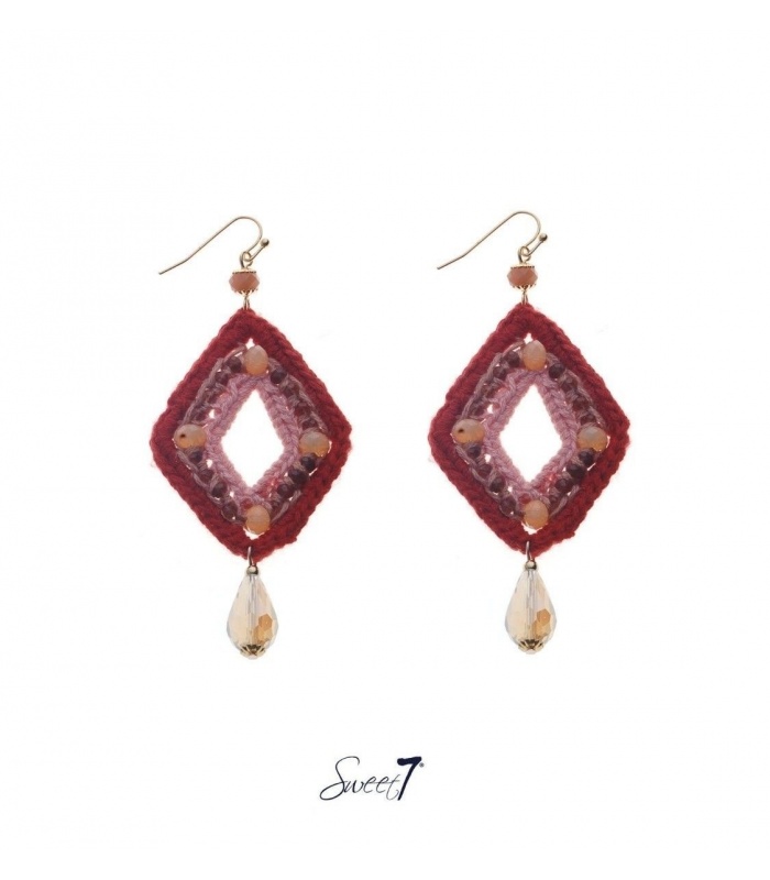 Terracotta gehaakte oorhangers in ruitvorm en kralen