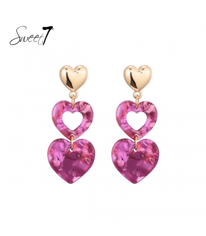Roze gekleurde harten oorhangers met een goudkleurig oorstukje