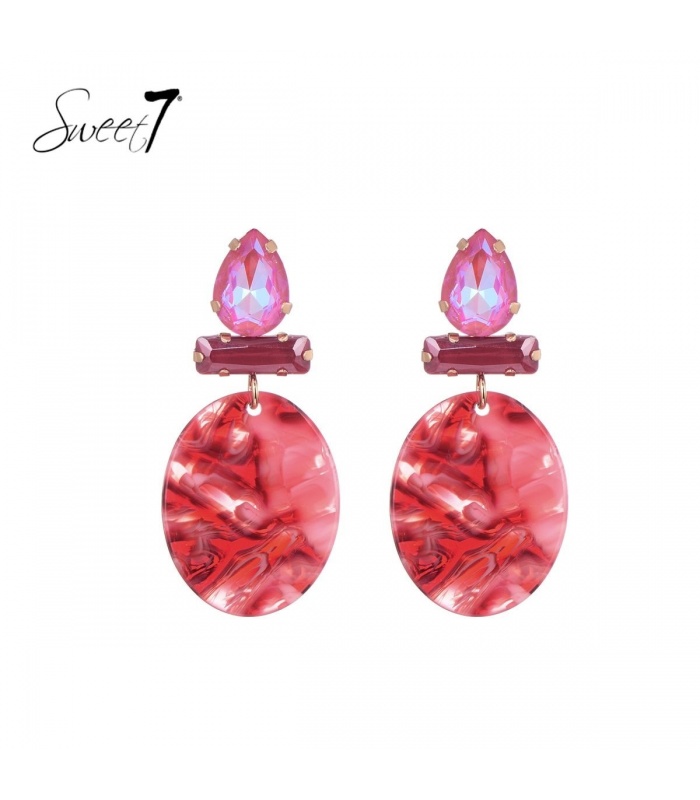 Roze gekleurde oorhangers met 2 glas steentjes in verschillende vormen