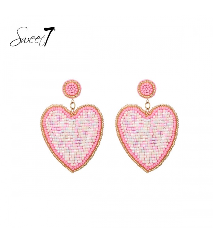 Roze harten oorhangers met een goudkleurige rand.