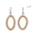 Roze kralen oorhangers met goudkleurige koord en beige kralen.