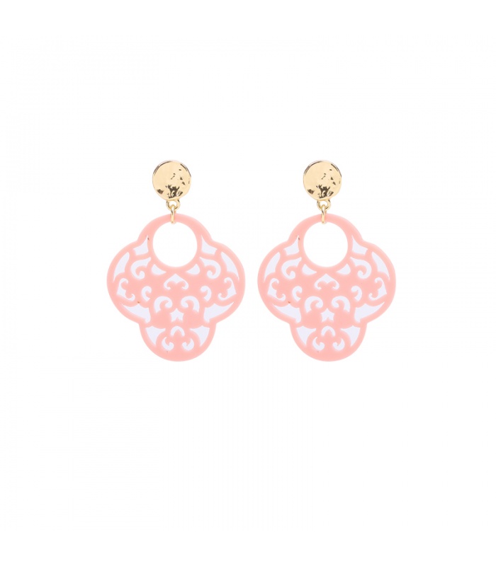 Roze oorbellen met een mooie hanger en een goudkleurig oorstukje