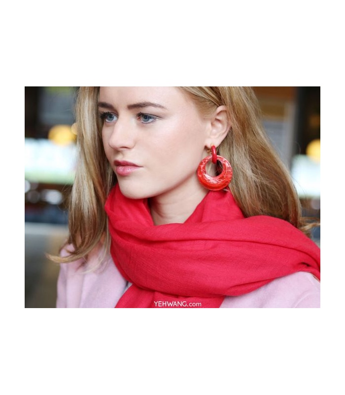 Rode oorhangers van stof en...