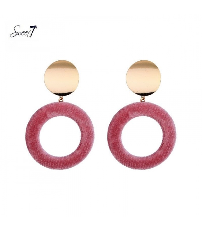 Roze oorhangers met stof en een goudkleurig oor stukje.