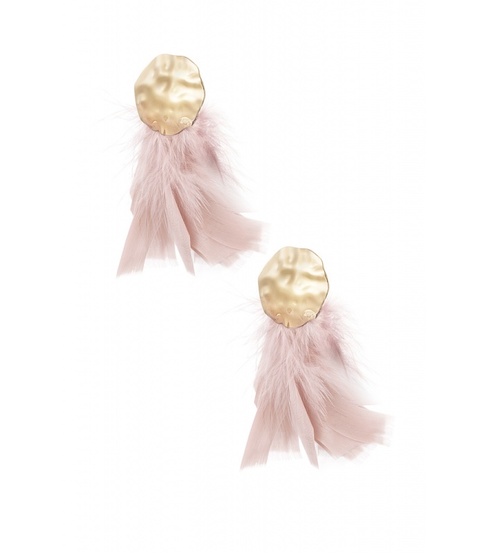 Deze roze oorhangers combineren zachte stof en een elegante veer, wat zorgt voor een speelse en toch stijlvolle uitstraling. De combinatie van stoffen details en een veer maakt deze oorhangers ideaal voor fashionista's die houden van unieke sieraden met een subtiele twist.