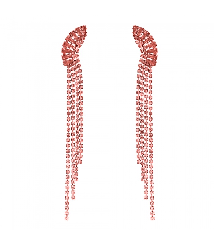 Ontdek onze nieuwe collectie roze oorhangers, ontworpen om jouw stijl te verfraaien. Deze oorbellen zijn de perfecte mix van elegantie en glamour, met hun glinsterende stras steentjes en delicate strengen die moeiteloos de aandacht trekken. Laat jezelf stralen met deze opvallende accessoires.