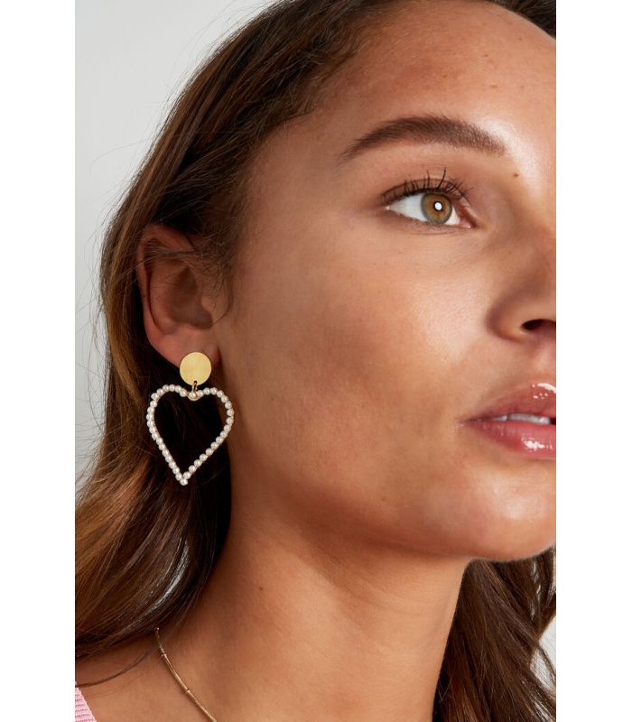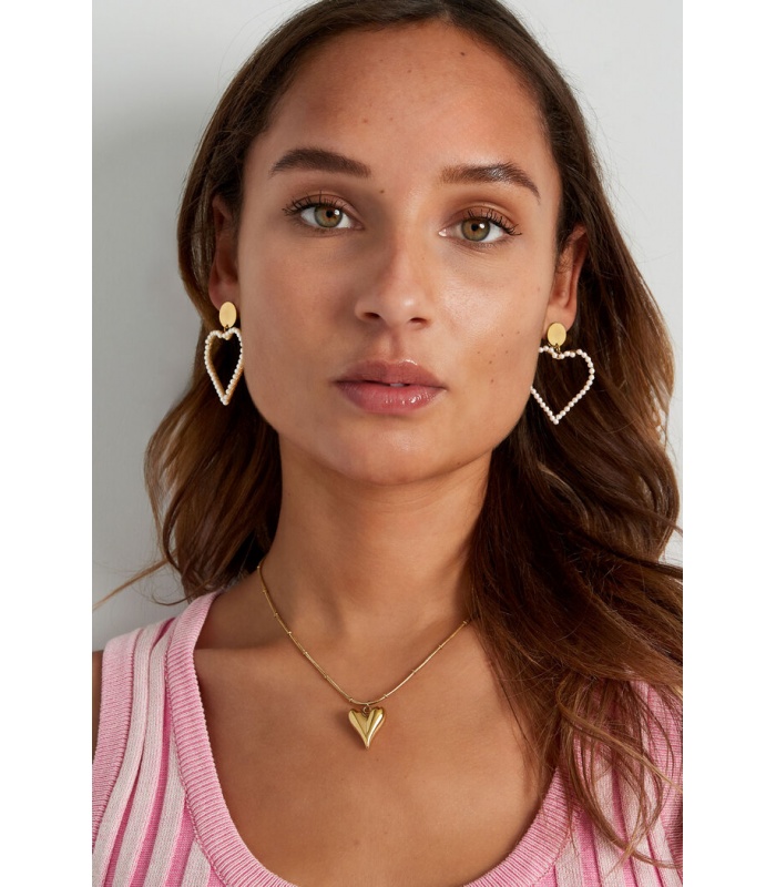 Goudkleurige oorhangers in de vorm van een hart met kunst pareltjes