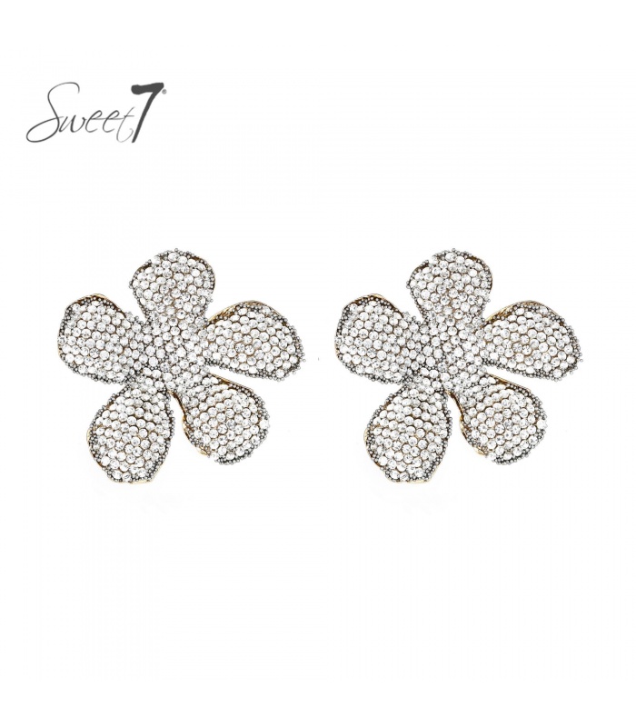 Hoe combineer je speelsheid met glamour? Deze oorbellen in bloemvorm zijn volledig bezet met fonkelende strass steentjes die bij elke lichtval schitteren. De verfijnde vorm en glanzende afwerking maken ze perfect voor feestelijke gelegenheden én stijlvol overdag