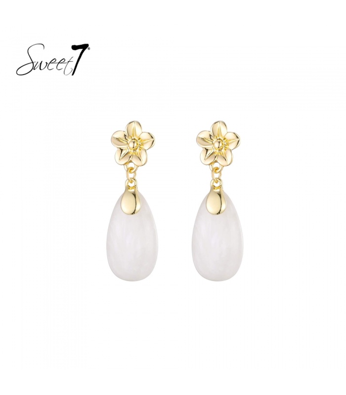 De witte druppel geeft een frisse look. De oorbel beweegt licht en vangt het licht mooi. Perfect als bloem oorbellen of druppel oorbellen voor een vrouwelijke stijl. Voeg direct een verfijnde touch toe aan je sieradencollectie.