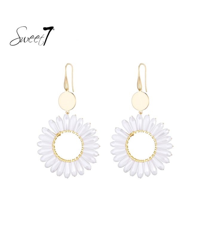 Oorbellen die doen denken aan een zonnige lentedag. Wat maakt deze oorbel zo bijzonder? De bloemvorm met witte blaadjes en goudkleurige cirkel vangt direct het licht. Deze statement oorbellen geven elke outfit een frisse look.