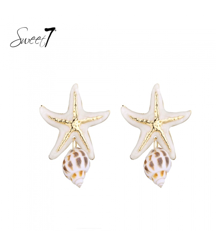 Wil je oorbellen die direct een vakantiegevoel geven? Deze oorbel met zeester en schelp in wit en goudkleur straalt een frisse, trendy look uit. Perfect als zomerse oorbellen of fashion oorbellen voor een lichte stijl.