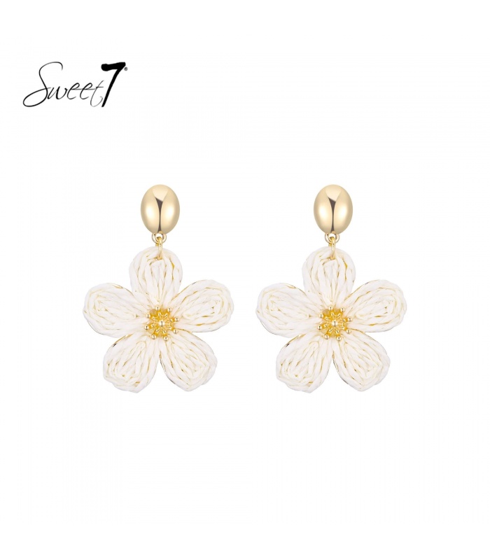 Zoek je oorbellen die luchtigheid en luxe uitstralen? Deze oorbel in bloemvorm combineert zachte witte tint met een goudkleurige basis voor een elegante touch. De hand gevlochten look geeft elk paar een uniek karakter. Lichtgewicht, maar opvallend.