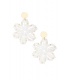 Witte bloemen oorhangers met gouden details.