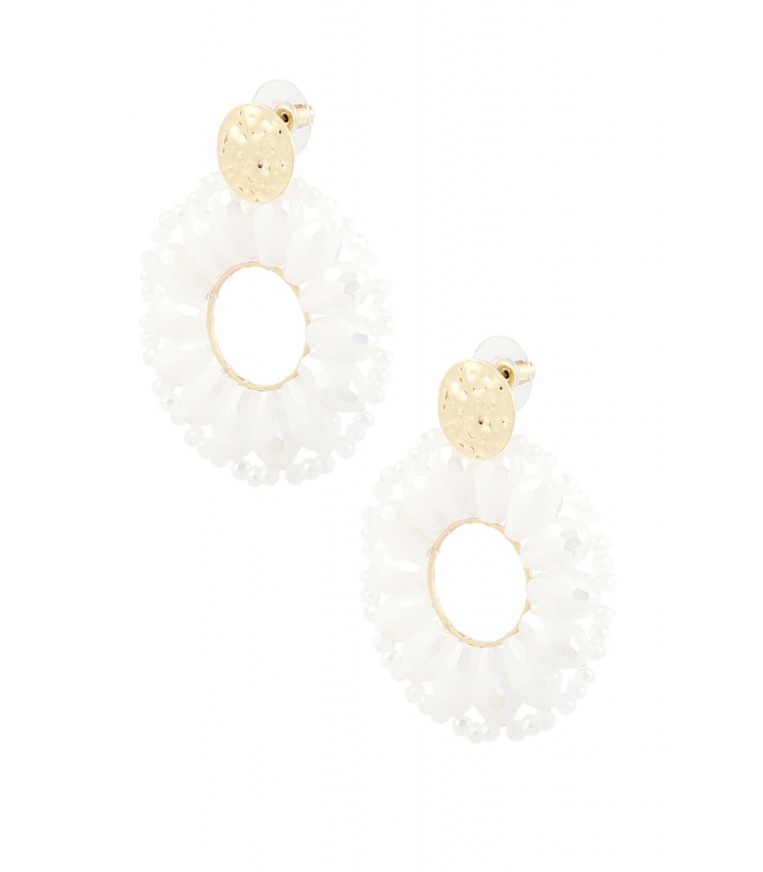 Ze combineren tijdloze elegantie met moderne fashion trends. De witte glaskralen reflecteren het licht prachtig, terwijl de goudkleurige details een luxueuze uitstraling geven. Ideaal voor de modieuze vrouw die haar stijl naar een hoger niveau wil tillen.
