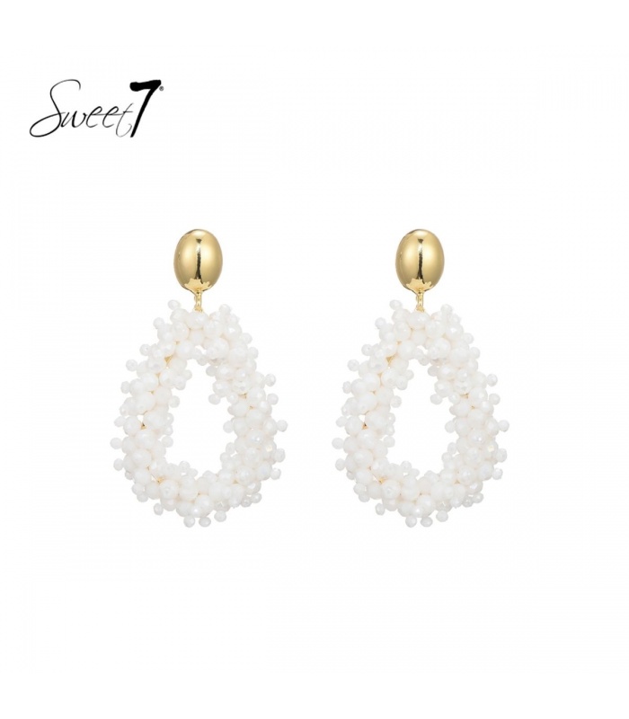 Witte glaskralen oorhangers met een goudkleurig oor stukje