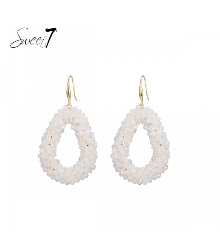 Witte oorbellen met glas kralen