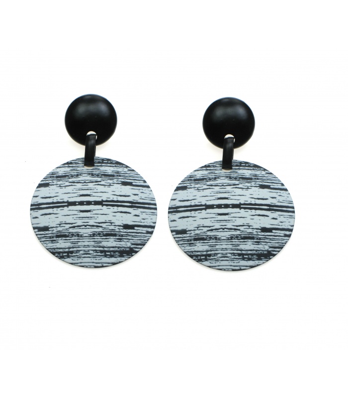 Witte oorhanger met zwarte accenten en zwarte oorsteker.