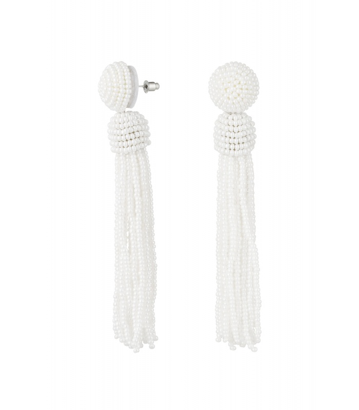 Voeg deze witte oorhangers met strengen van glaskralen toe aan je sieradencollectie en maak je look compleet! Ze zijn perfect voor een avondje uit of een speciale gelegenheid en zullen zeker de aandacht trekken.