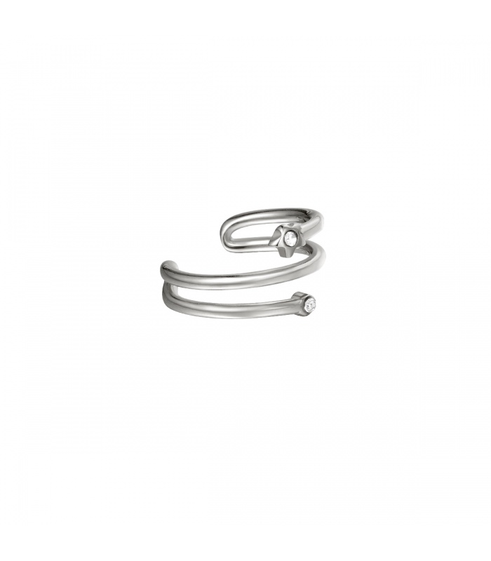 Zilverkleurige earcuff in spiraalvorm met kleine steentjes.