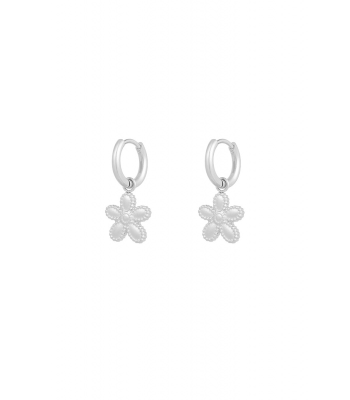 Modieuze zilverkleurige bloemen oorhangers voor een verfijnde look.