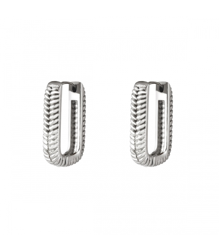 Zilverkleurige geweven rechthoekige oorbellen groot.