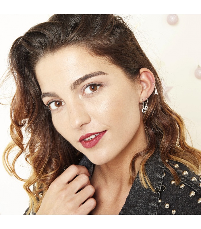 Zilverkleurige oorbel met zirkonia steentjes en initiaal A