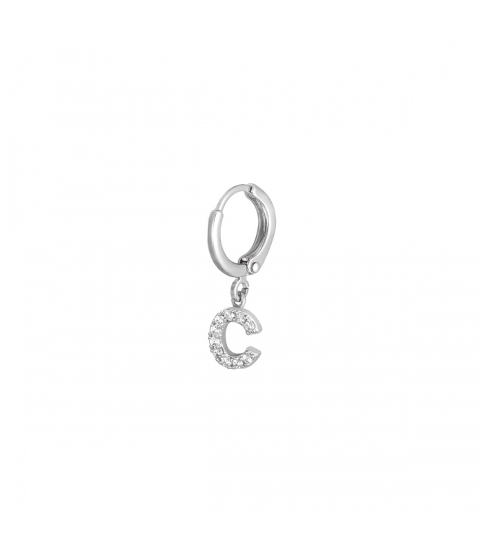 Zilverkleurige oorbel met zirkonia steentjes en initiaal C