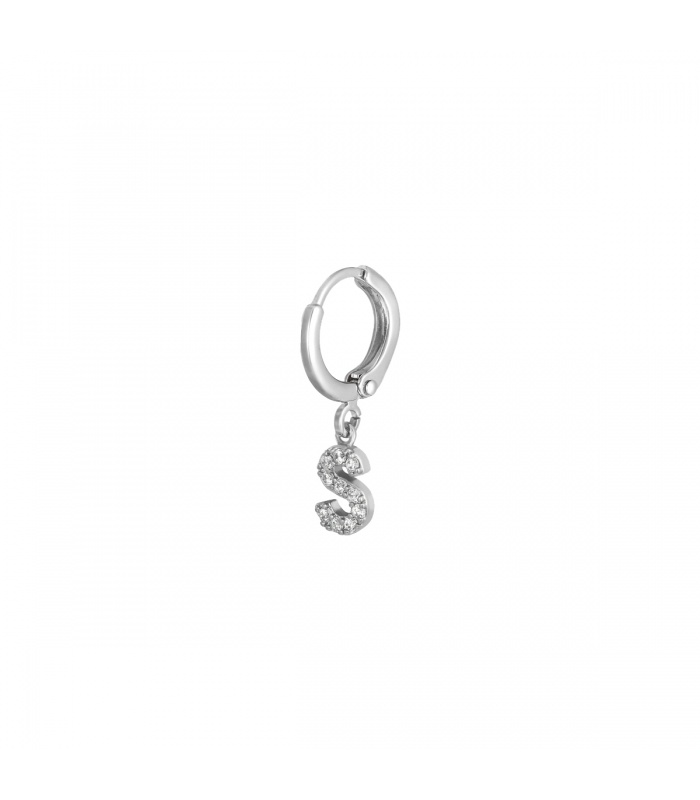 Zilverkleurige oorbel met zirkonia steentjes en initiaal S