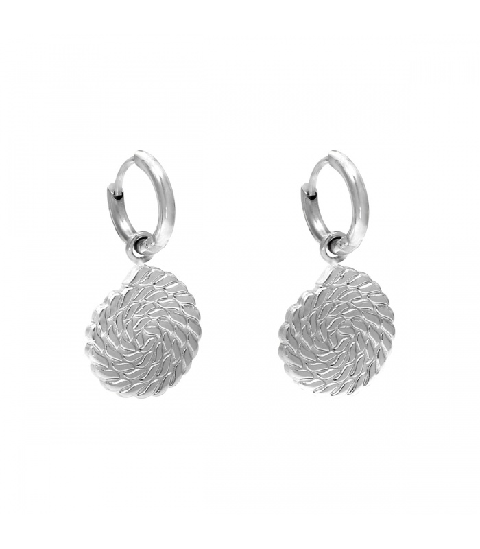 Zilverkleurige oorbellen met een bewerkte hanger